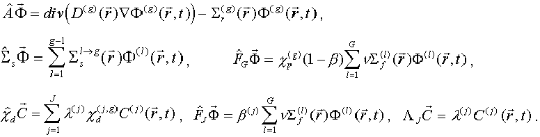 The system of equations for description of the space neutron kinetics in nuclear reactors may be written in the following operational form: