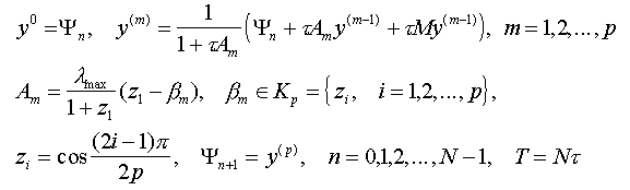 where Kp - the set of the Chebyshevs polynomial roots for p - degree with special ranking [4]. Factor A1 = 0, therefore first iteration is equivalent to the explicit scheme.