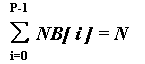разделяет массив A на P блоков. Блок i размера NB[i] распределяется на процессор R[i]. При этом должно выполняться равенство